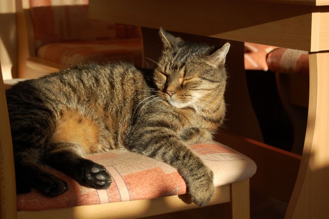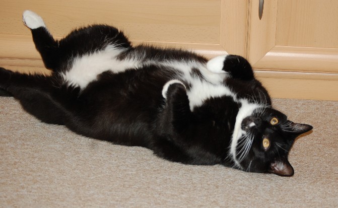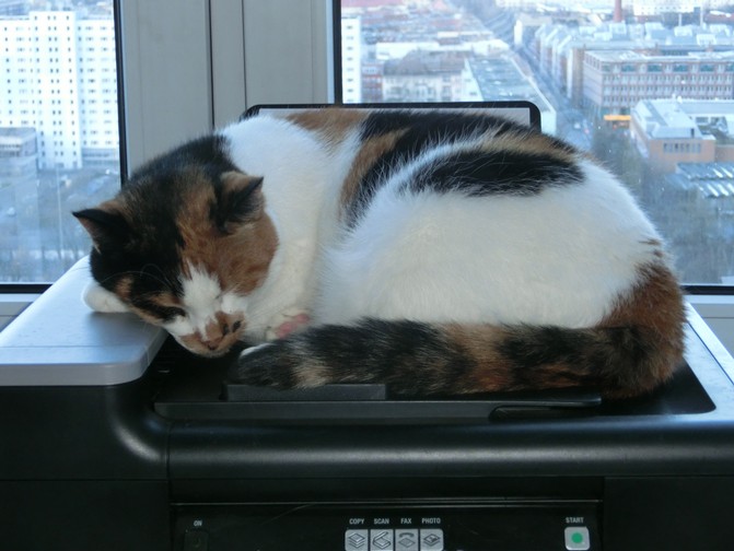 Katzen "besitzt" man nicht und sie wohnen nicht bei uns, sondern wir wohnen bei ihnen.