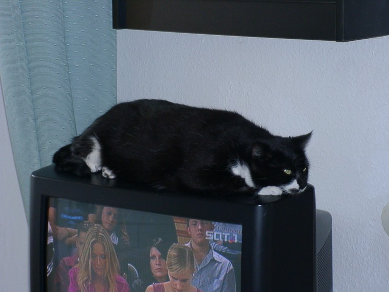 Meist flüchtete sie dann zu ihrem "Menschenpapa", der sie vor den Katern beschützen sollte.